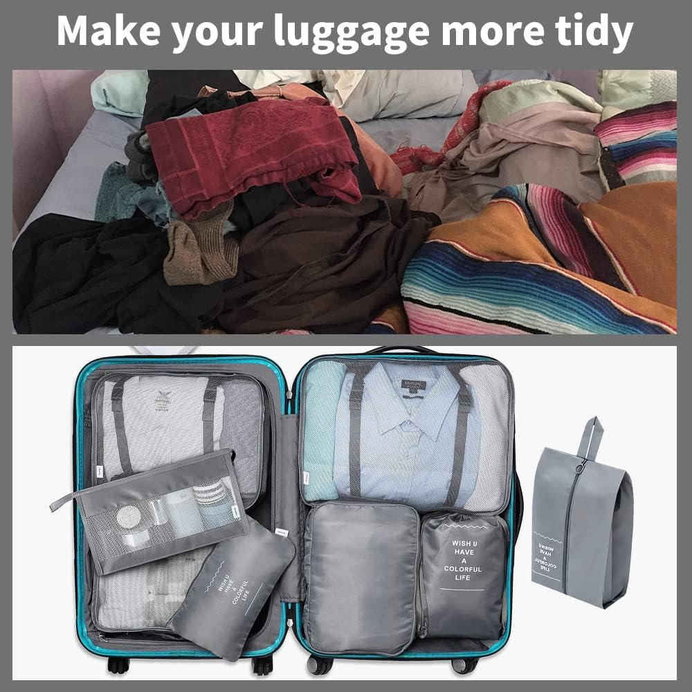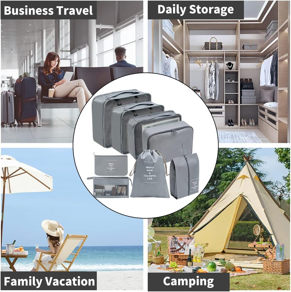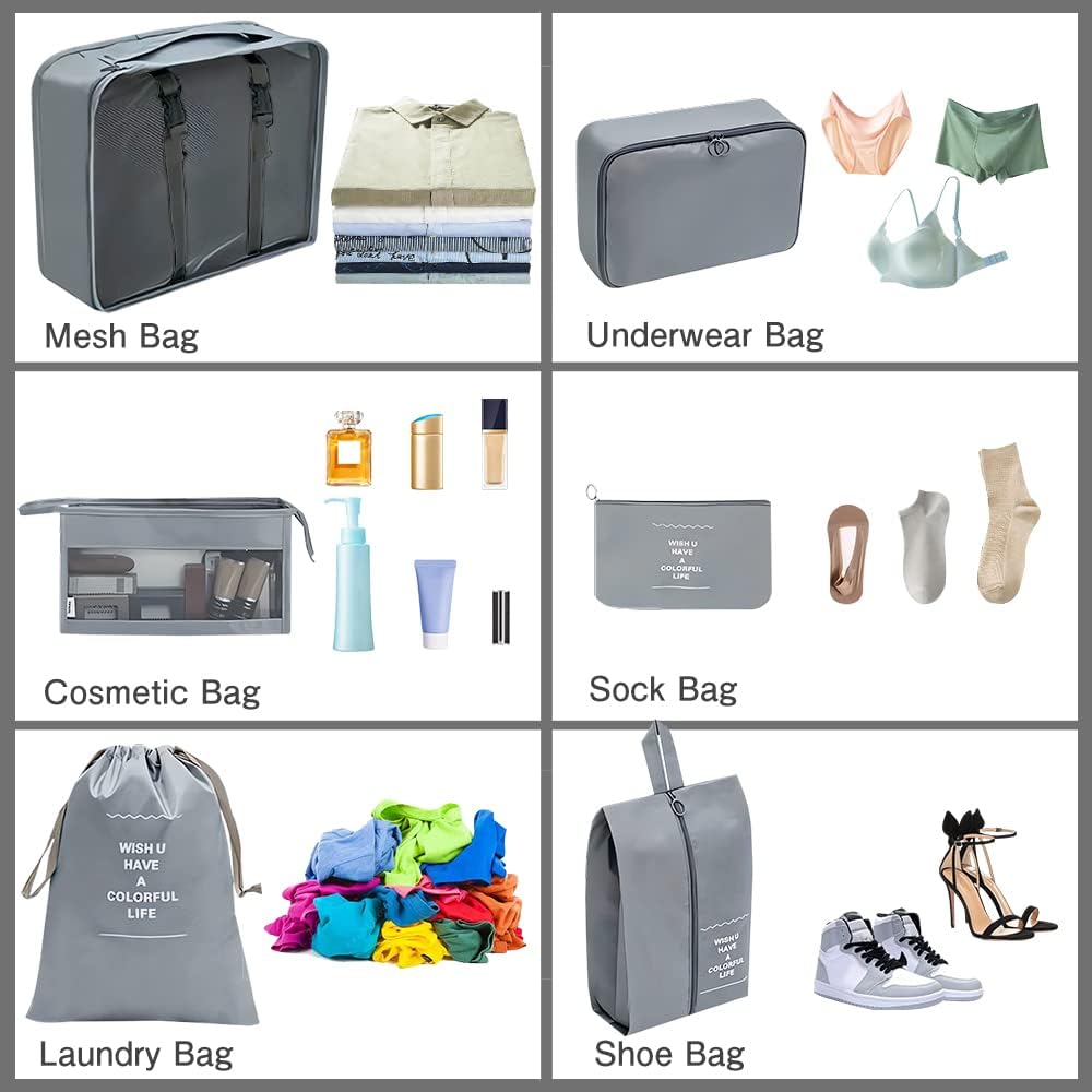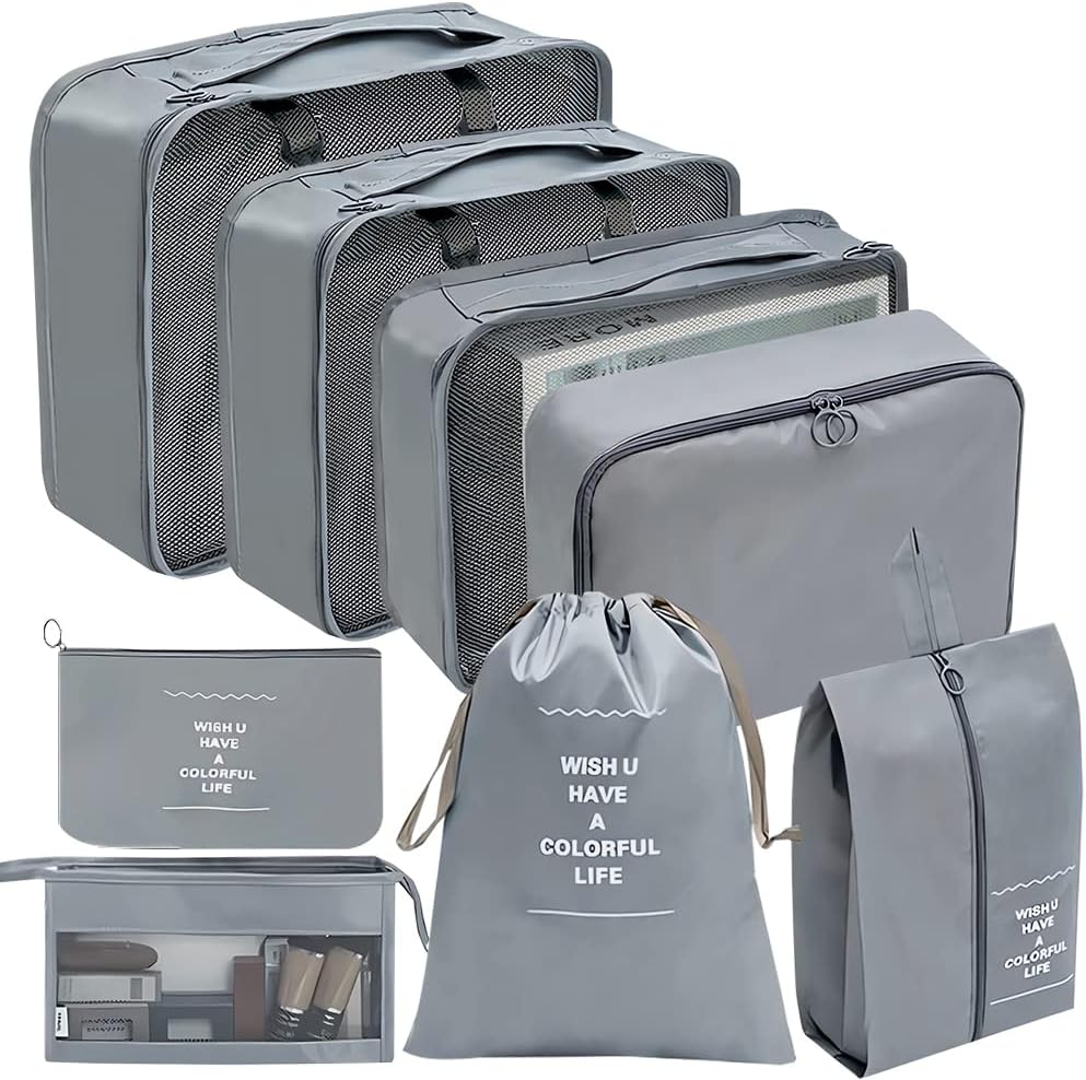 Organizator pentru bagaje format din 8 piese, dimensiuni diferite, perfect pentru troller sau valiza, gri
