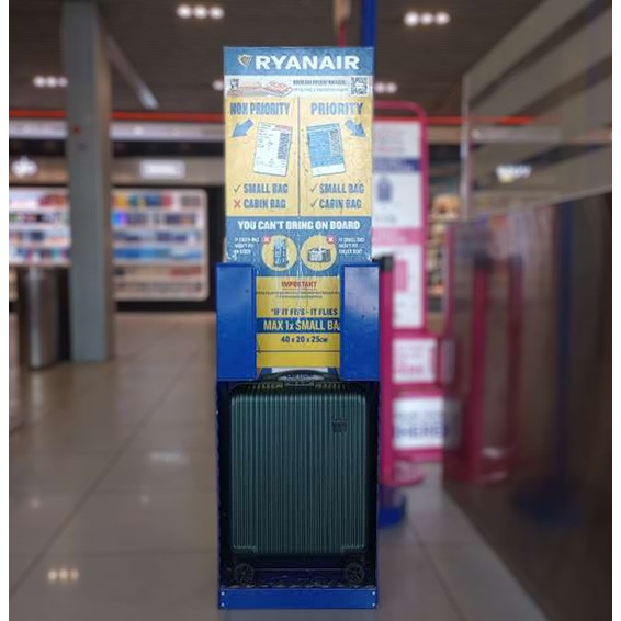 Dimensiuni standard: 40 × 30 × 20 cm – compatibil bagajului de mână gratuit oferit de majoritatea companiilor low-cost.