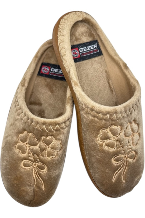 Bucură-te de confort absolut cu acești papuci de casă pentru damă, creați special pentru momentele tale de relaxare. Realizați într-o nuanță elegantă de maro, cu model floral brodat, acești papuci îmbină perfect funcționalitatea cu un design feminin și plăcut.