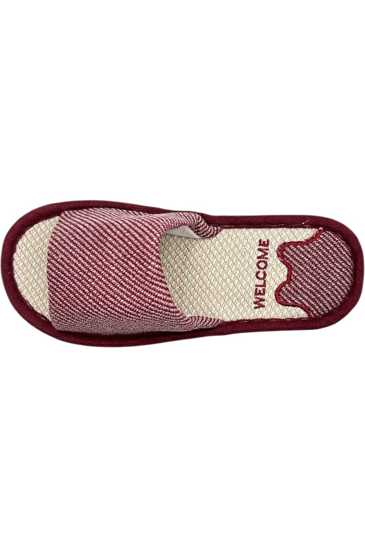 Papuci de casa pentru dama, Tecos®, roșu, mărime 36-37, 23 centimetri, imprimeu WELCOME, talpa comoda și respirabilă