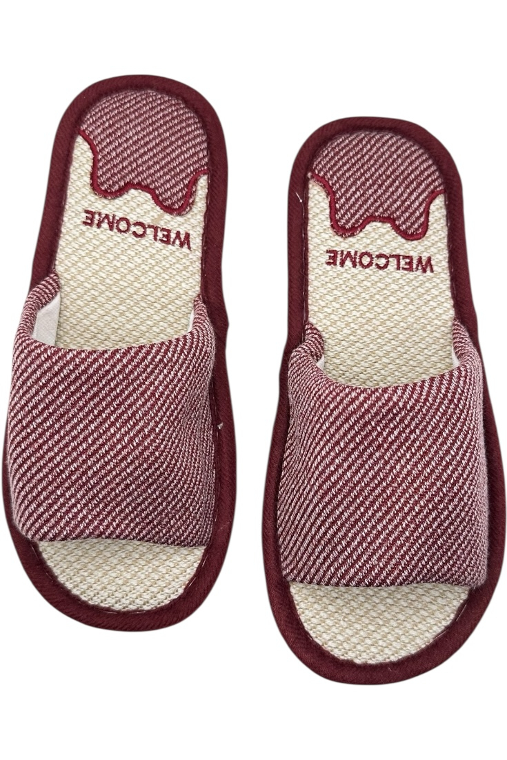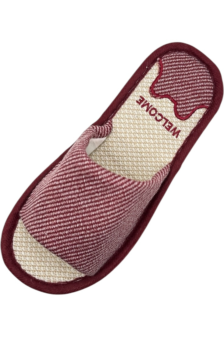 Descoperă papucii de casă pentru damă Tecos, model roșu cu imprimeu “Welcome”, creați pentru confort, căldură și respirabilitate. Disponibili în mărimile 36-41, cu talpă moale și design slip-on, sunt alegerea ideală pentru relaxare zilnică și cadouri inspirate.