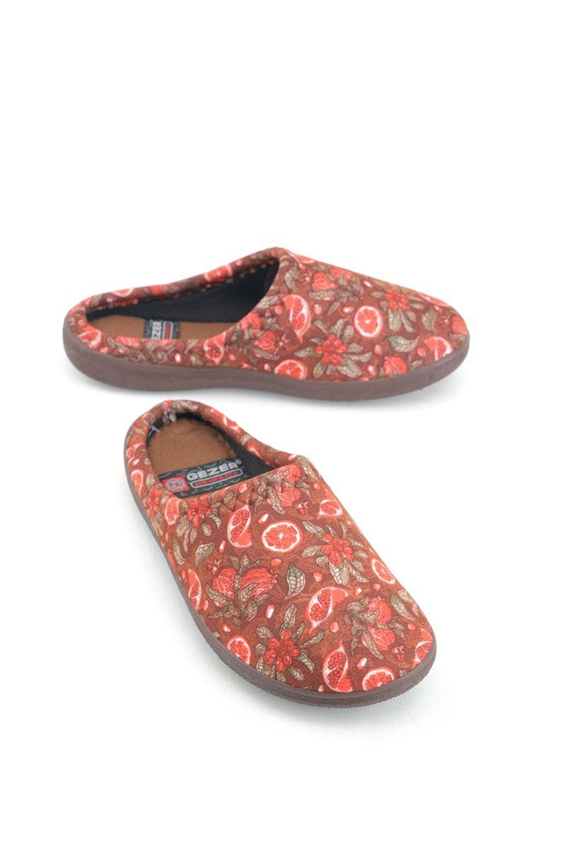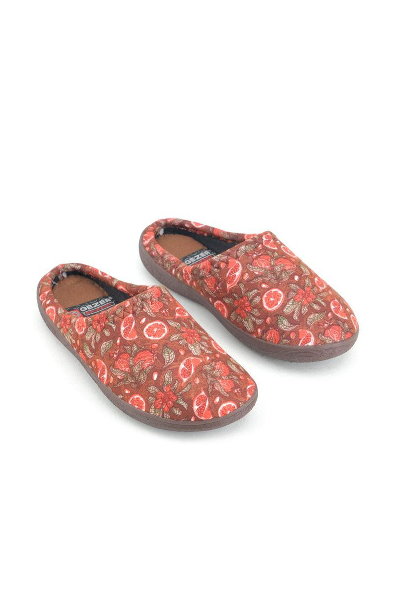 Papuci de casă damă – maro cu imprimeu fructe: combinație de confort, căldură și eleganță