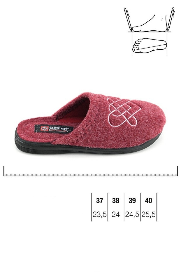 Incalzeste-ti picioarele si bucura-te de confort in fiecare zi cu acesti papuci de casa rosii Gezer, realizati din material textil moale, respirabil si placut la atingere. Cu un design elegant, simplu si cu broderie de inimioare, acesti papuci sunt alegerea perfecta pentru sezonul rece, dar si pentru purtarea zilnica in casa.