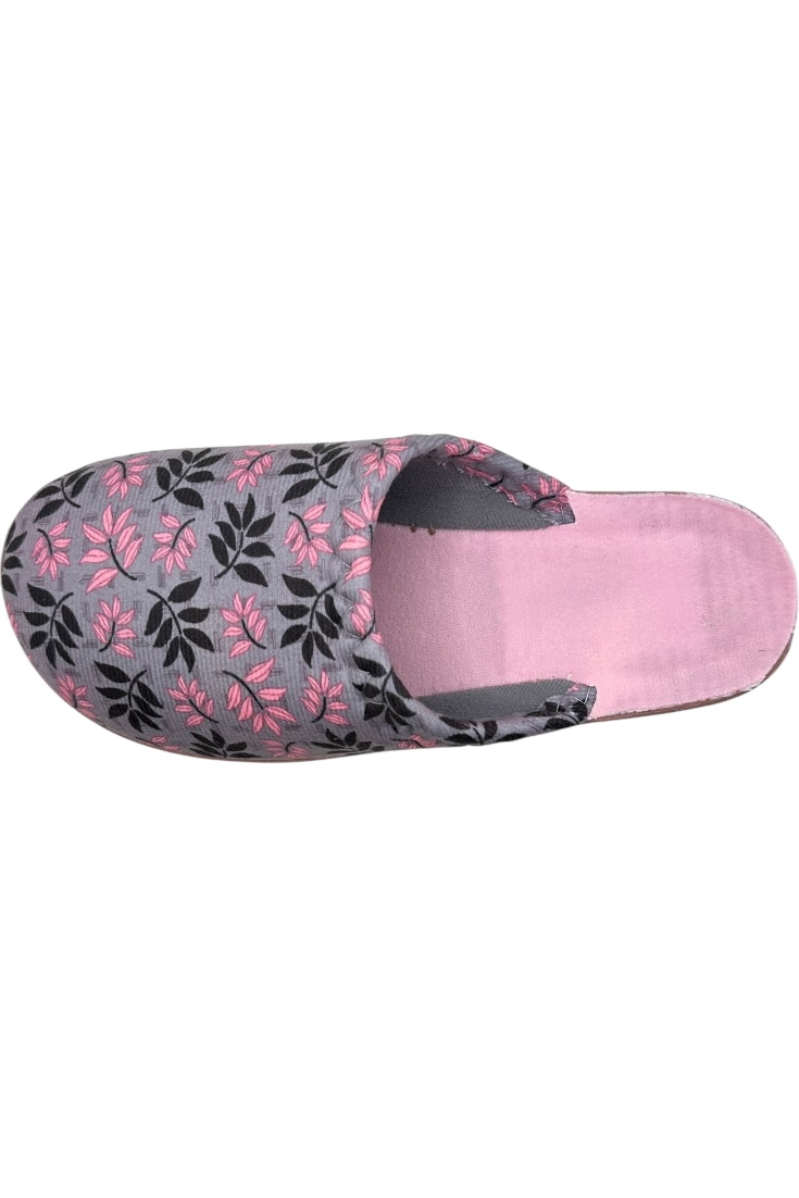 Material: Exterior moale textil sau material plăcut la atingere, cu imprimeu floral, care adaugă un accent feminin și elegant pe papuc.