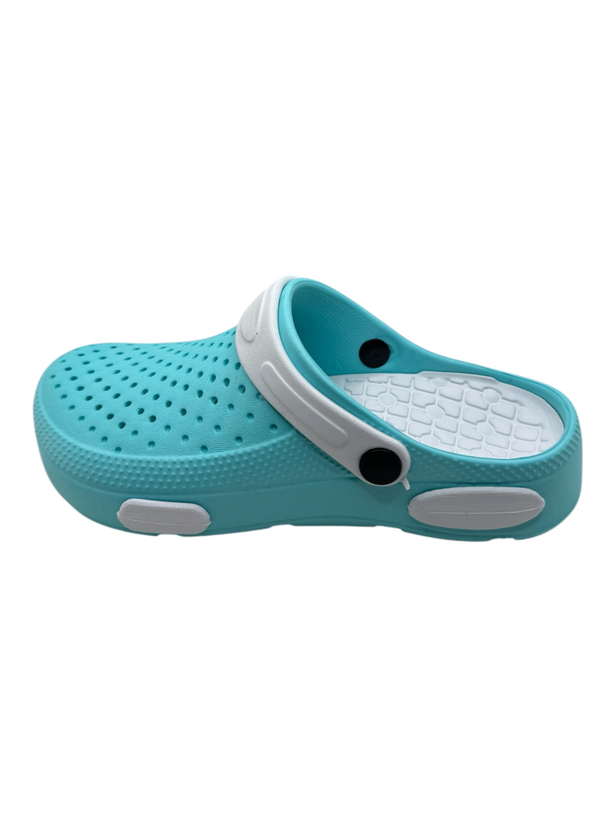 Materialul EVA este recunoscut pentru greutatea redusa si flexibilitatea ridicata, oferind o senzatie placuta la fiecare pas. In plus, designul perforat permite o ventilatie excelenta, mentinand piciorul uscat si confortabil chiar si in zilele calduroase.