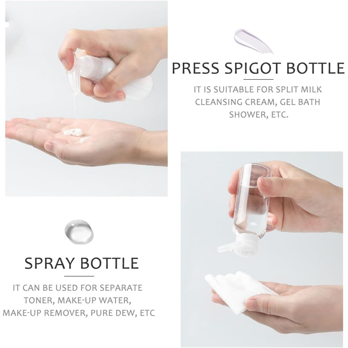 Recipient pentru apa micelara: Revigorati si purificati tenul, folosind apa micelara intr-un recipient usor de transportat, ideal pentru refacerea rutinei de ingrijire a pielii in timpul calatoriilor.